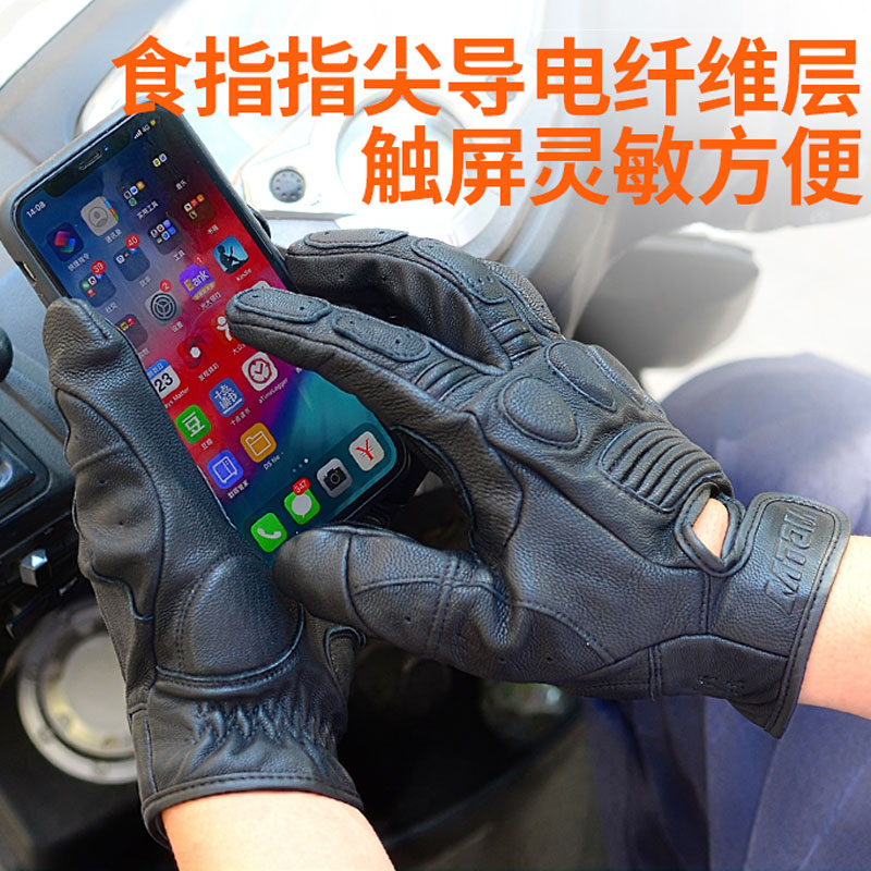 Vintage motorcycle Harley motorcycle rider riding cowhide touch screen fall-proof men and women Dennis summer breathable gloves