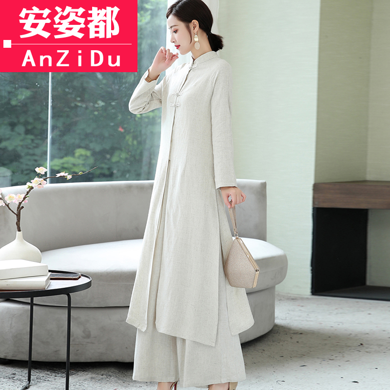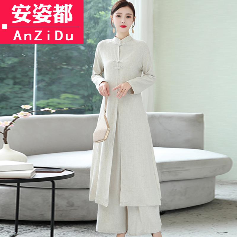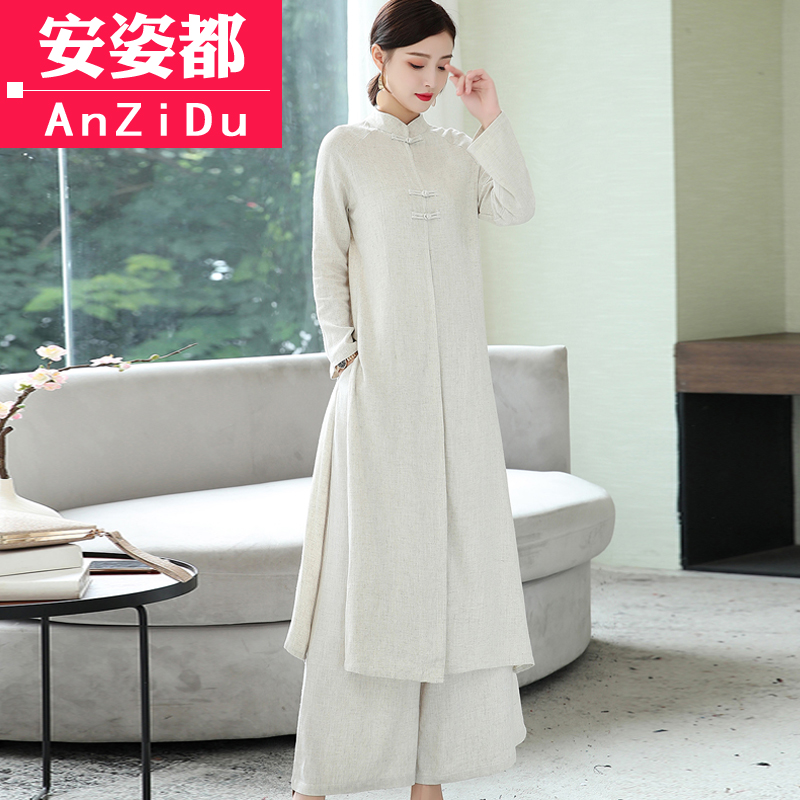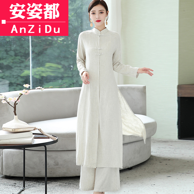 Chinese women's clothing cotton linen tea for autumn and winter Zen Serie sweatwear Chinese wind improved qipao blouses Tangdress suit