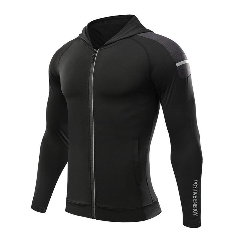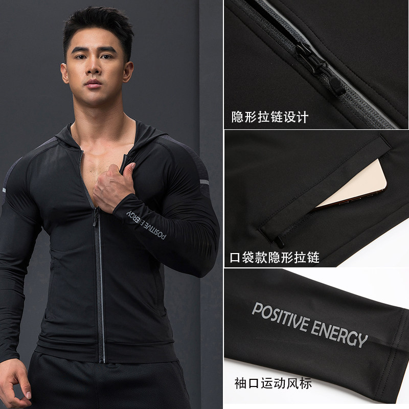 Line iron Wolf autumn and winter men's long-sleeved elastic breathable quick-drying tight fitness clothes hooded muscle bodybuilding training clothes