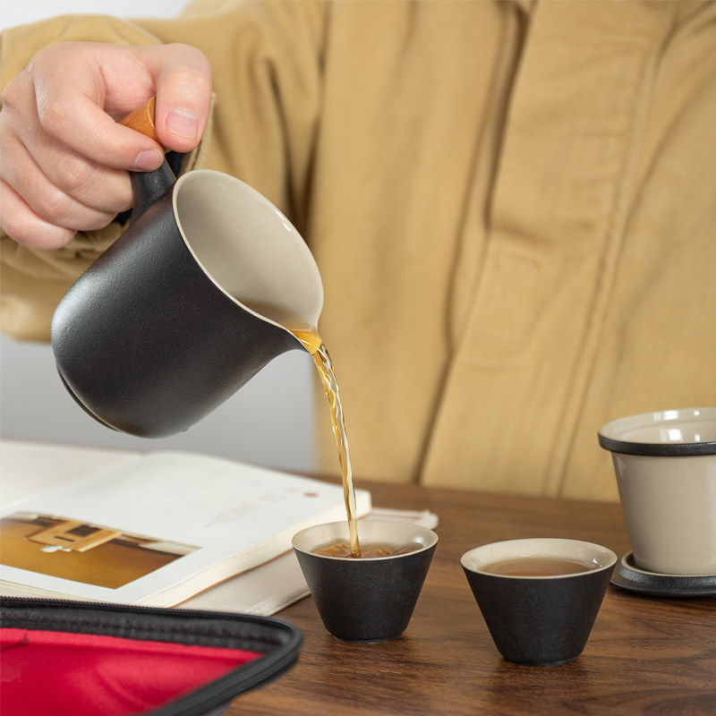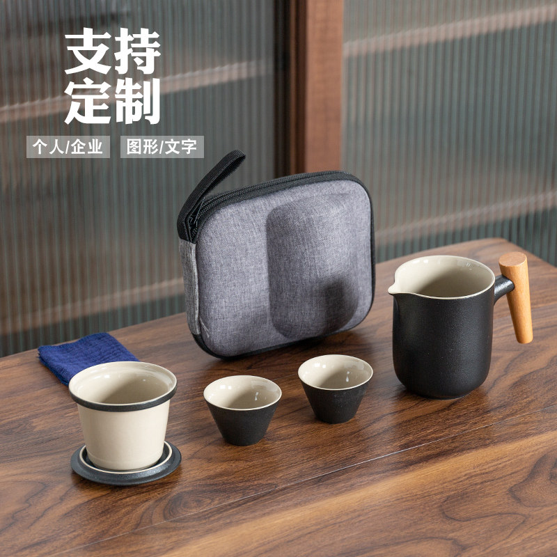 Ceramic one pot two cups portable tea set travel bag tea set outdoor car express cup travel custom logo