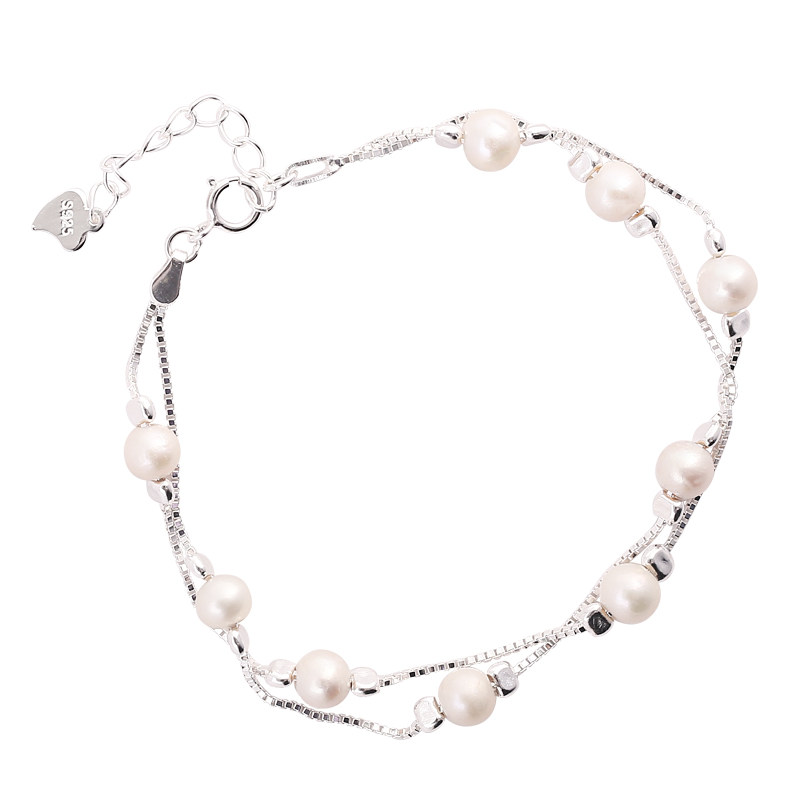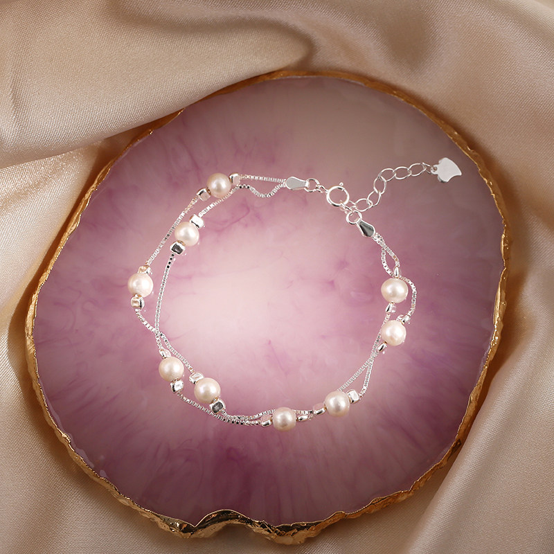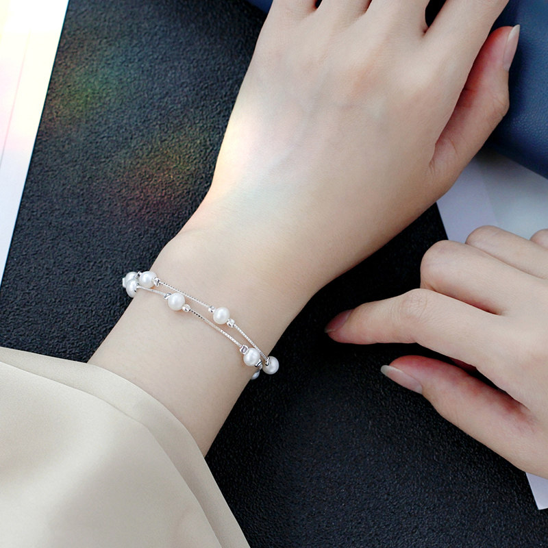 Double-layer pearl hand-made girl's baby's breath simple natural pearl niche design box chain bracelet gift for girlfriend - Taobao