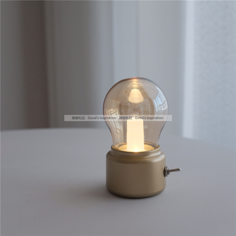 Retro Small Bulbs Ins South Korea Tabletop Trim Bedroom Small Night Light USB Lamp Luminous Pendulum Piece Industrial Wind Glass