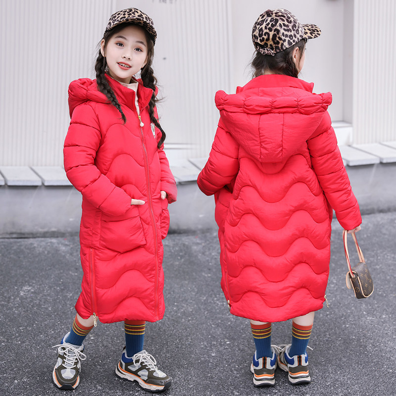3 Children 4 girls ' autumn and winter coat 2021 new 5 medium and long version 6 thickened 7 foreign school 8 little girl down cotton coat