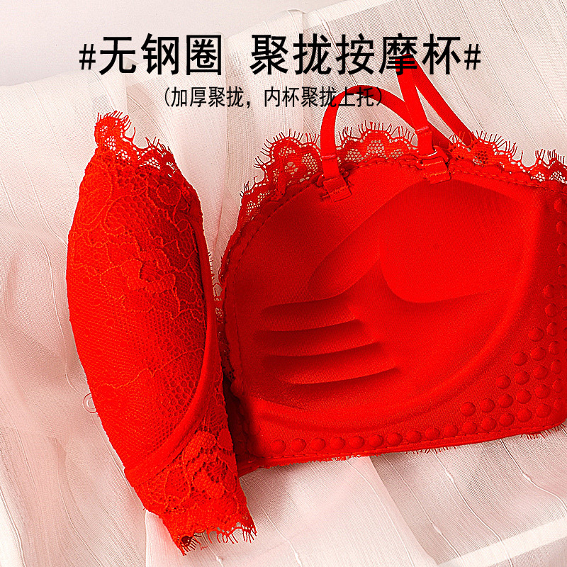 Big Red Sexy Kit Lingerie Girl Wedding Bride Lace Little Cute This Year No Steel Ring Gathers Little Breast Bra