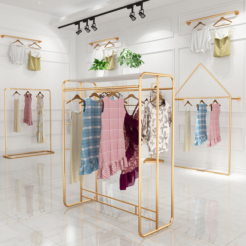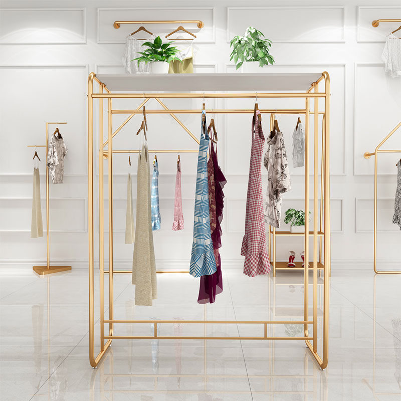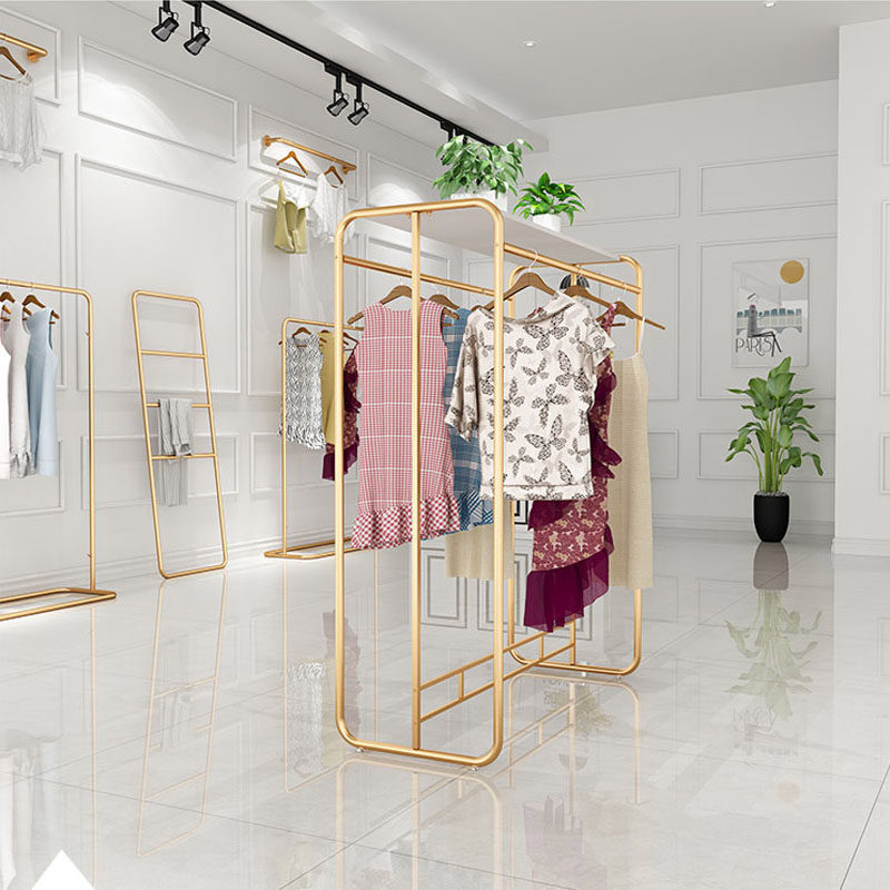 Clothing Store Middle Island Show Rack Iron Art Landing Clothes Show Shelf Brief Hanging Clothes Hanger Women's Clothing Shop EFFECT FRUIT PLOT