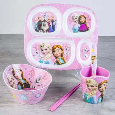 Pink Plastic Bowl Spoon chopsticks circular plate spoon square 4 lattice spoon si ge pan five pieces set 1 si ge pan five pieces set 2 si ge pan five pieces set 3 si ge pan five pieces set 4 si ge pan five