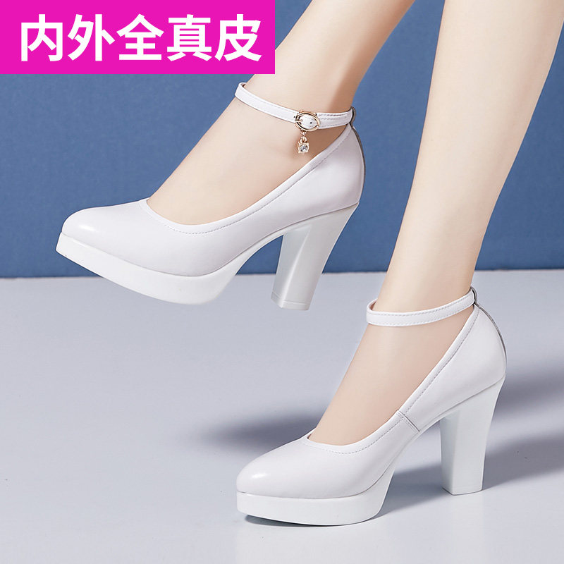 Cheongsam show training special T stage performance high heels thick heel waterproof platform white leather model catwalk single shoes women