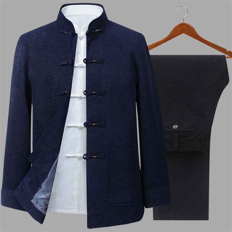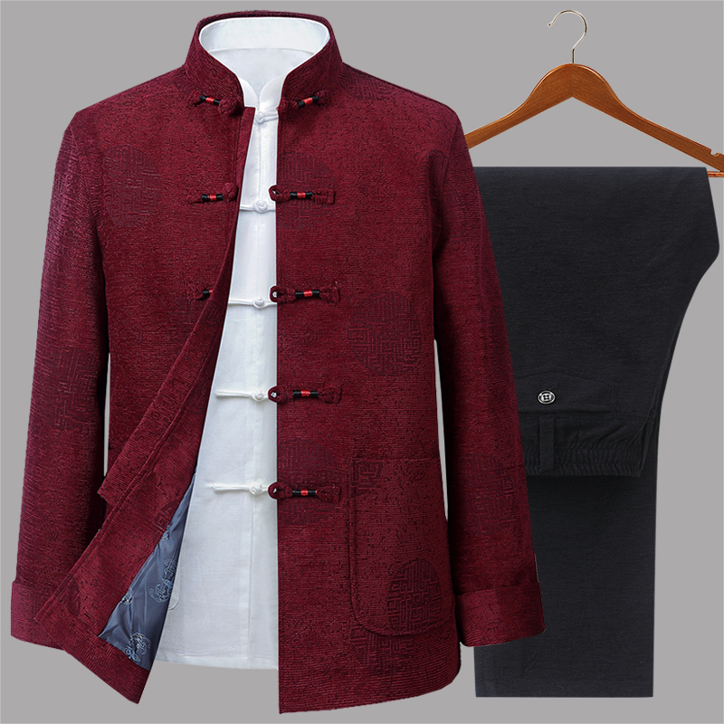Spring Autumn Season China Wind Tango Men's Long Sleeve Suit Middle Aged Loose Large Size Yard for Winter Birthday Wishes Birthday daddy jacket