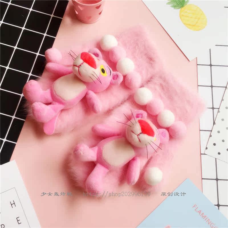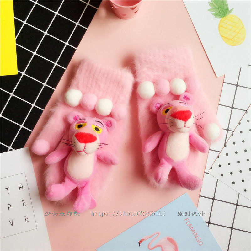 ins Korean hair ball pink leopard gloves Girl heart pink cartoon student with fingers cute thickened cotton gloves