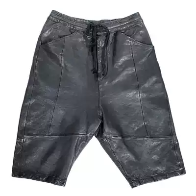 Japanese new men's loose leather pants without water dyeing and washing old first layer sheepskin leather five-point shorts