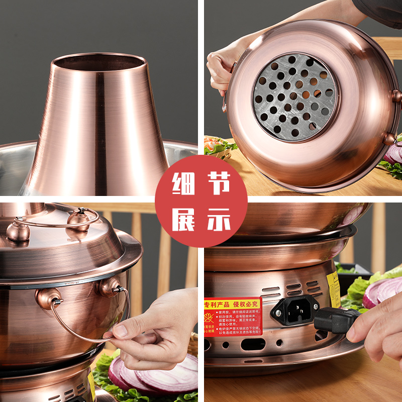 Thickened imitation copper hot pot charcoal copper pot household shabu-shabu lamb old-fashioned electric carbon dual-purpose commercial old Beijing fire boiler