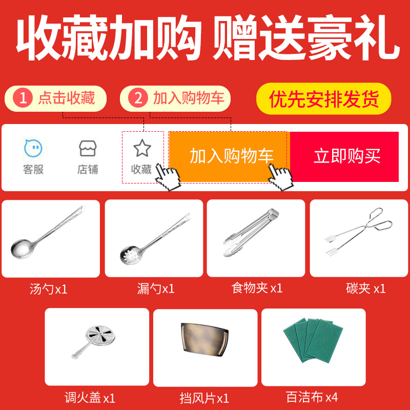 Thickened 304 gold 36cm (charcoal type) 10 gifts free