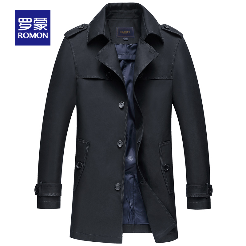 Roemon's medium long version of the wind clothes men's 2022 spring autumn new turn-collar business casual jacket for young workout jacket