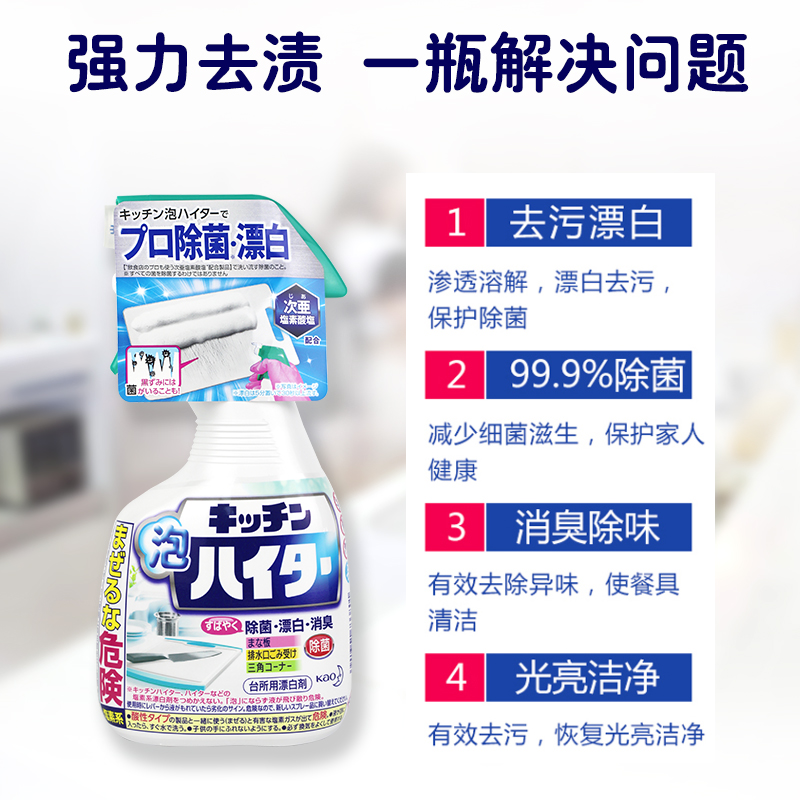Japanese Flower King Kitchen Oil Stain Foam Bleach Disinfection Except Bacteria Spray Cleanser To Grease Dirt 400ml-Taobao