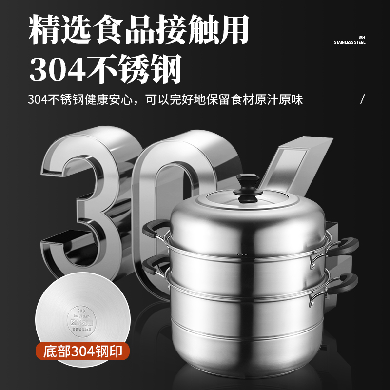 SUS304 steamer 30CM three-layer extra thick bottom 6mm