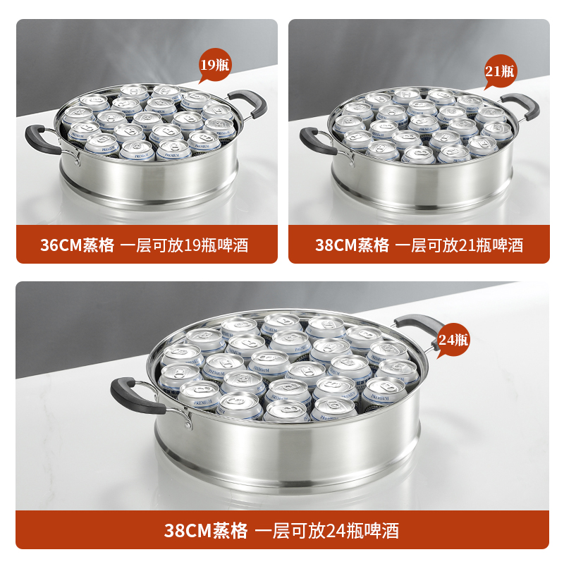 SUS304 steamer 38CM three-layer extra thick bottom 6mm