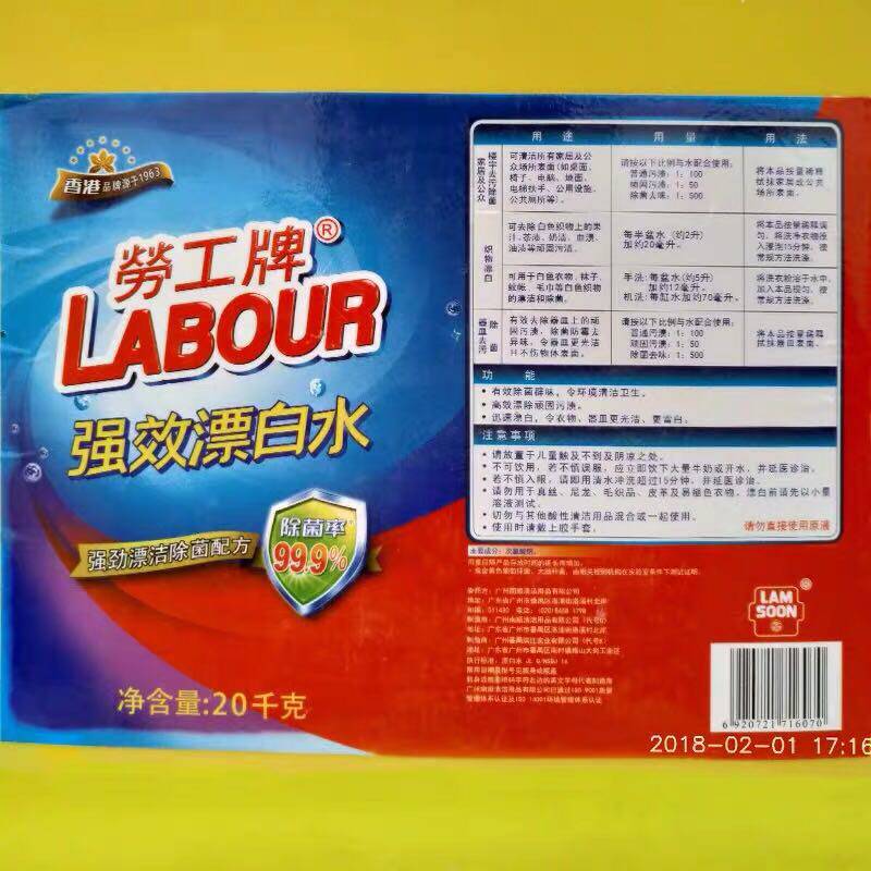 Labor brand large barreled bleach thick 20kg40kg bleach water clothes bleach liquid Hotel Hotel dining hall bag