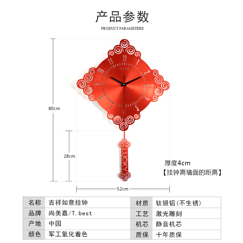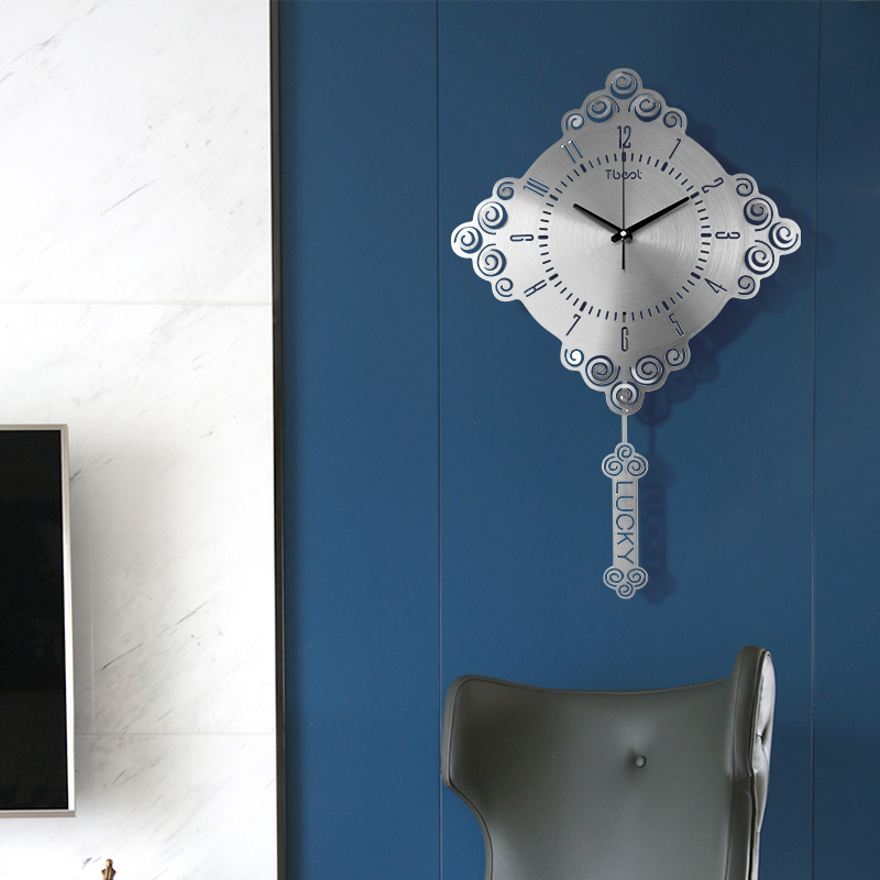 Clock personality Modern Chinese knot art clock wall hanging creative pendulum wall clock Living room household fashion simple atmosphere