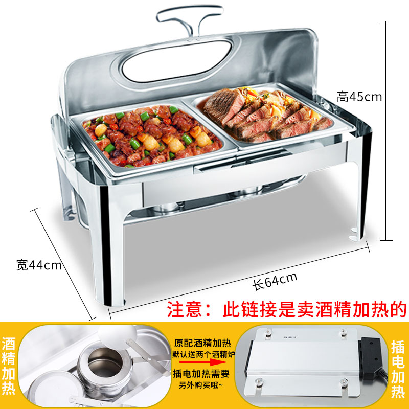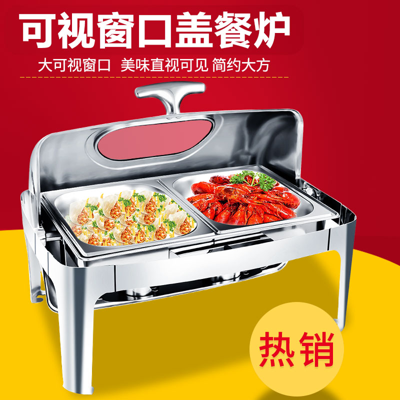 Stainless steel buffet stove Electric heating square insulation stove Visual clamshell insulation pot Hotel breakfast Buffy furnace