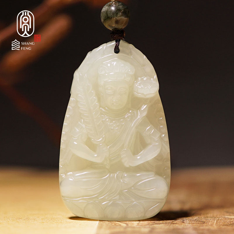 Hetian Jade Natal Buddha pendant Great day as if to Manjushri Samantabhadra Pusha thousand hands Guanyin Bodhisattva male and female pendant