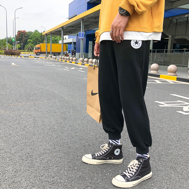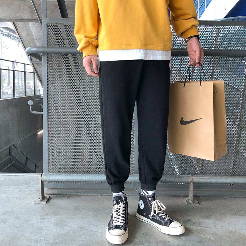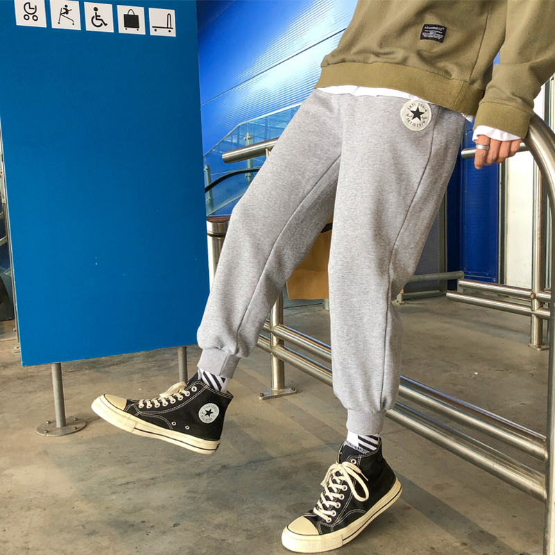 Spring sports pants men's loose toe casual pants high street trend ruffian handsome plus velvet Harlan pants knitted gray pants