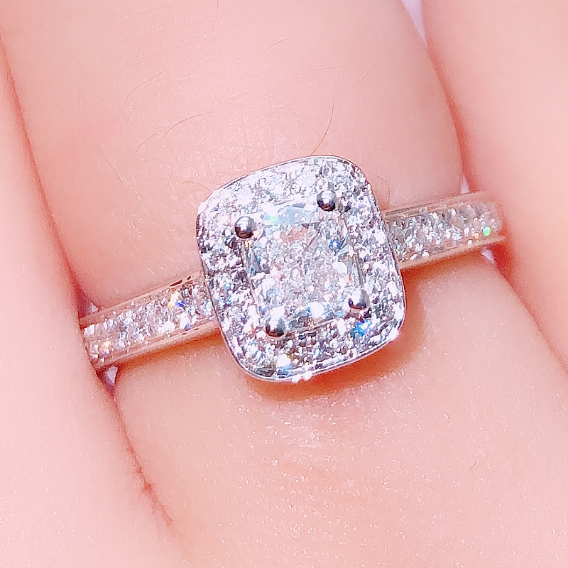18K white gold 50 cushion shaped diamond ring 1 carat princess square diamond female ring custom square diamond ring-Taobao