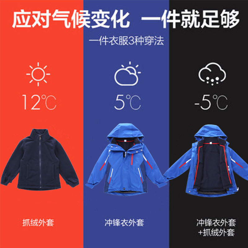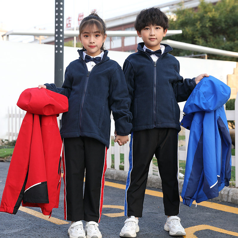 Elementary school charge jacket school uniform set detachable autumn and winter clothes for middle school students thick coat children's class uniform three-piece set