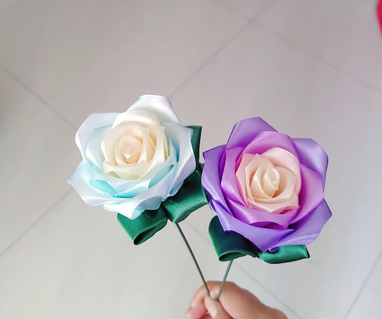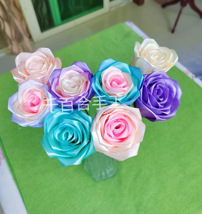 28 (finished) single ribbon rose blue jig ice and blue hand - crafted rose DIY hand flower