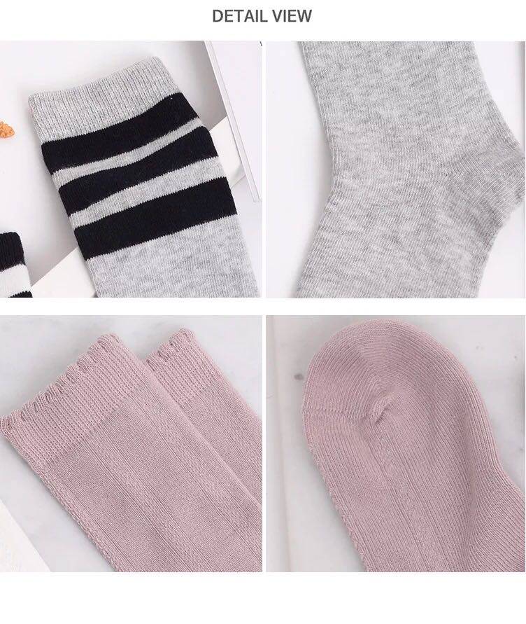 Bambi middle tube socks student girls cotton fungus edge anti-leash boneless seam comfortable inner pantyhose solid color