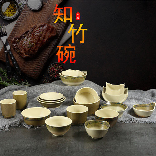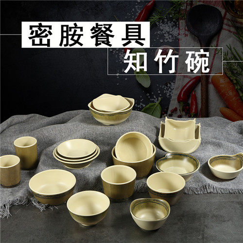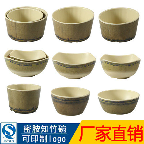 Creative Know Bamboo Roast Melamine Small Bowl Cutlery Tableware Commercial Imitation Porcelain Hotel Rice Bowls Fire Pot Shop Flavoring Plastic Cutlery