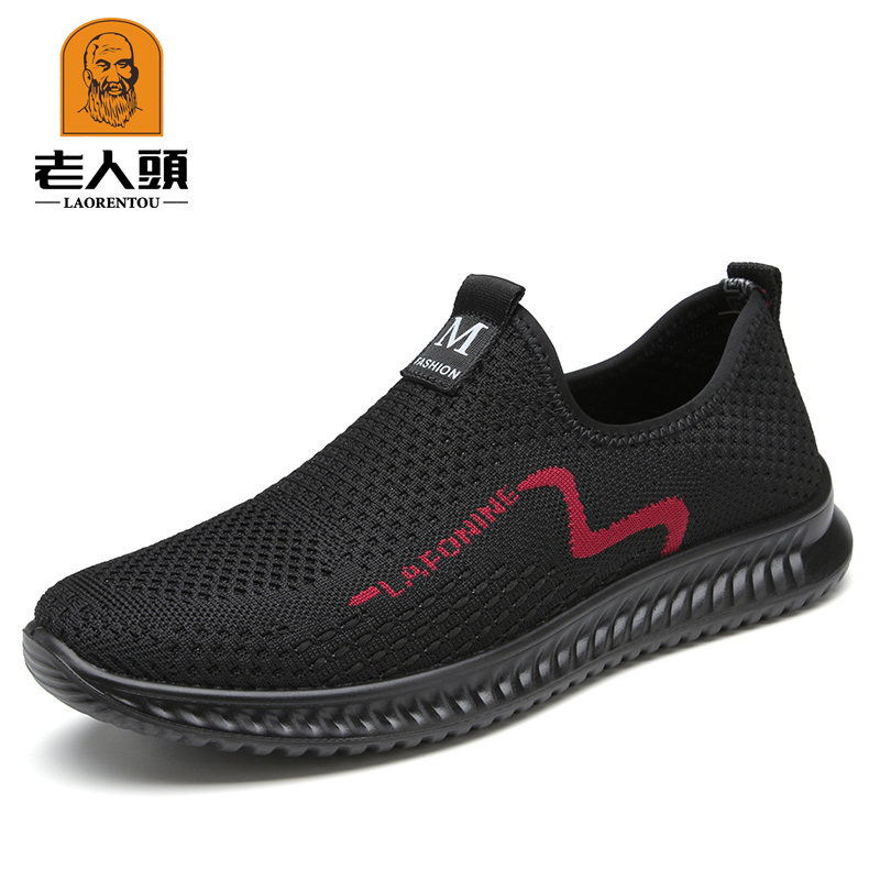Old man's head casual shoes men's 2022 autumn new men's shoes breathable flying woven lazy one pedal set foot mesh shoes men