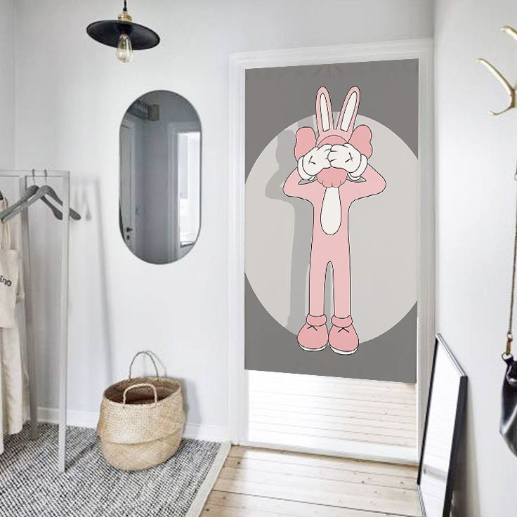 ins partition window kaws hanging cloth tide brand door curtain telescopic rod hole-free kitchen Japanese fabric semi-curtain customization