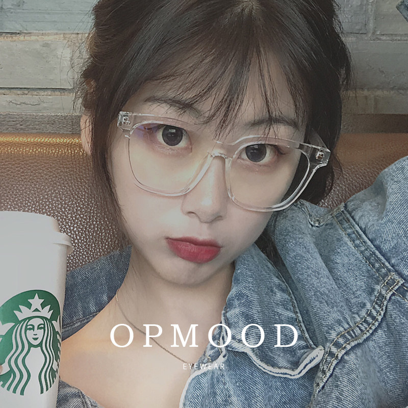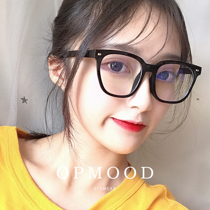 Vegan black frame glasses radiation-resistant anti-blue light large frame near view eye mirror female display face small colour changing box glasses male tide