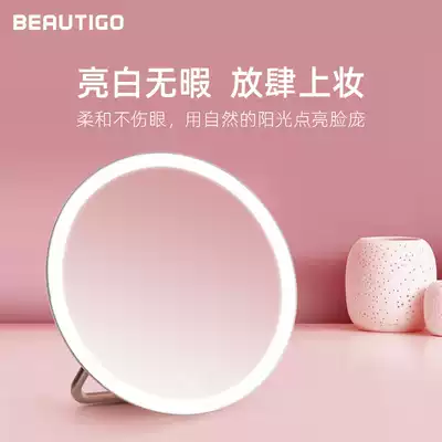 beautigo small round LED Smart makeup mirror desktop with led fill light Net red beauty makeup mirror female patch light