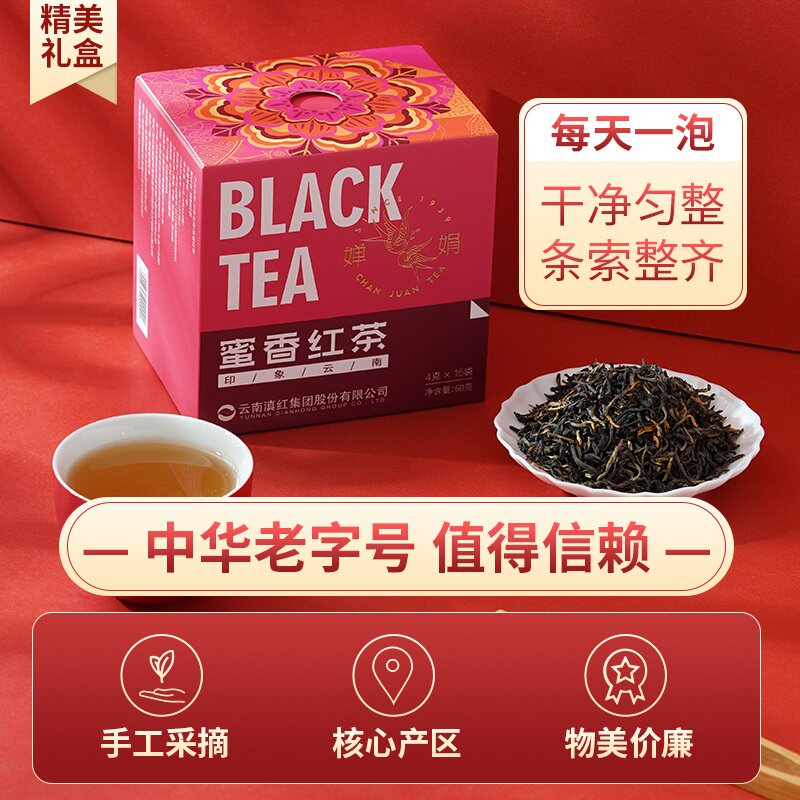 Pinewood black tea Yunnan Zhengzong Fengqing Impressions Yunnan Black Tea Honey Aroma 60g Tea Gift Box Over Festival Gift