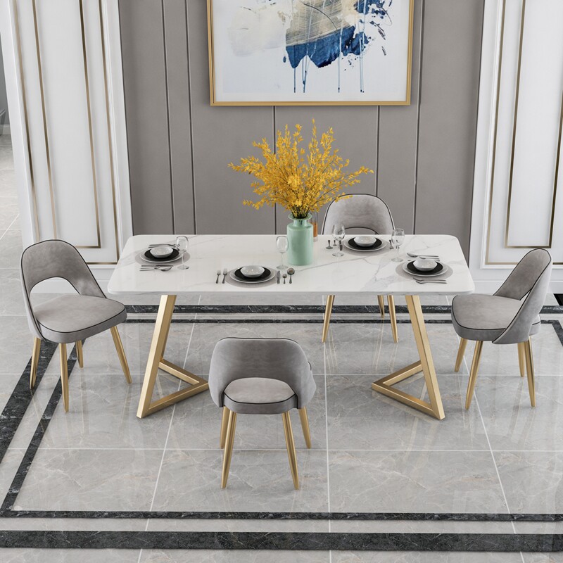 Nordic slate dining table home small apartment modern minimalist net red dining room rectangular iron dining table and chair combination