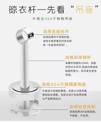 304 stainless steel balcony clothes top fixed drying rack single pole hanging clothes rod household