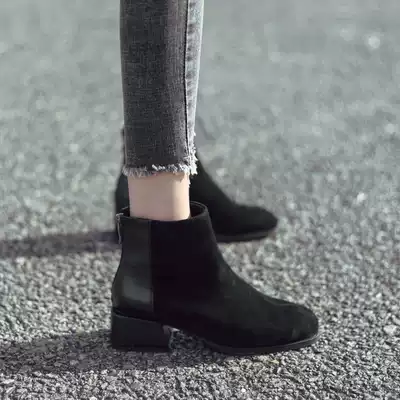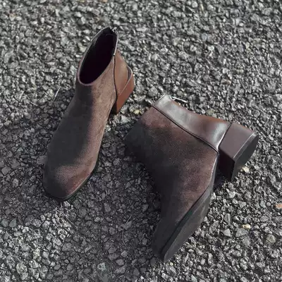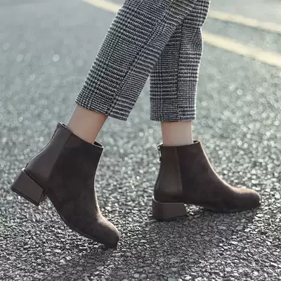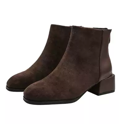 Fashion boots women 2021 autumn and winter new students Joker thick heel back zipper middle heel short tube women's boots spring and autumn single boots