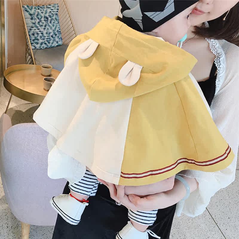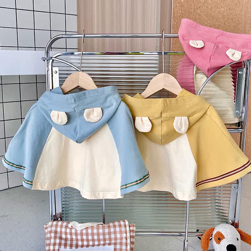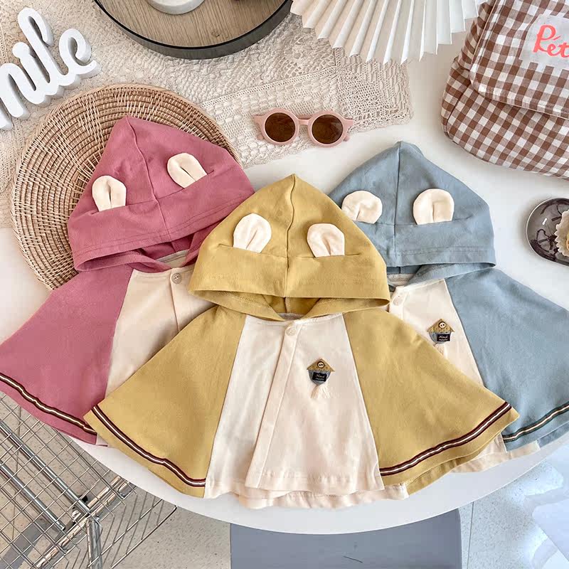Spring and autumn clothes baby cape hooded cute baby going out cloak 0-1 years old male pure cotton windproof shawl coat female 2