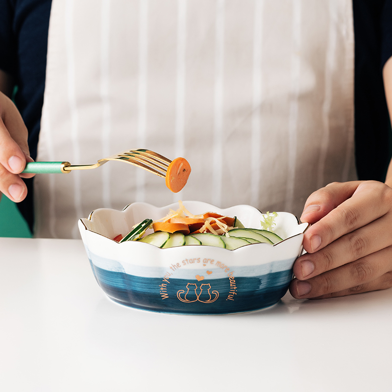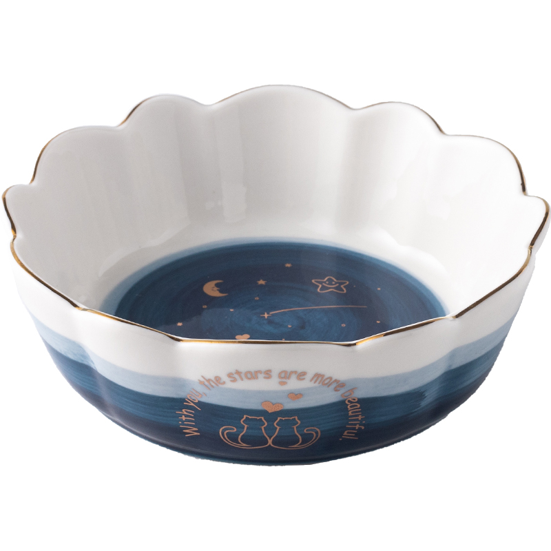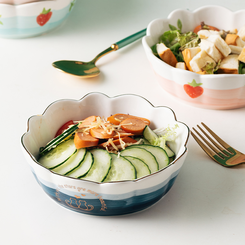 Cute girl heart strawberry ceramic salad fruit bowl Single starry sky dessert bowl Household breakfast bowl Flower personality