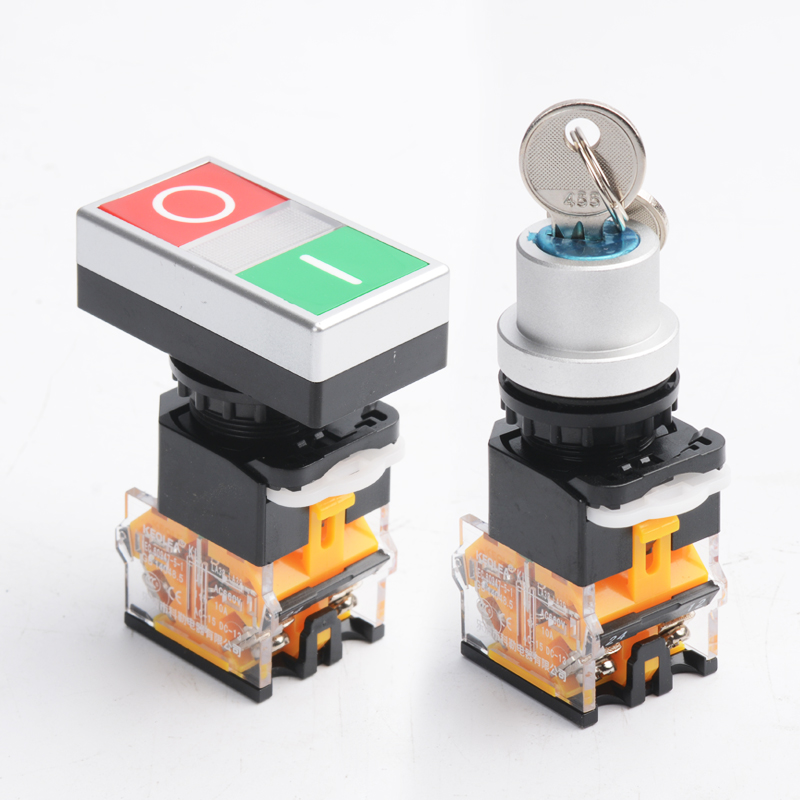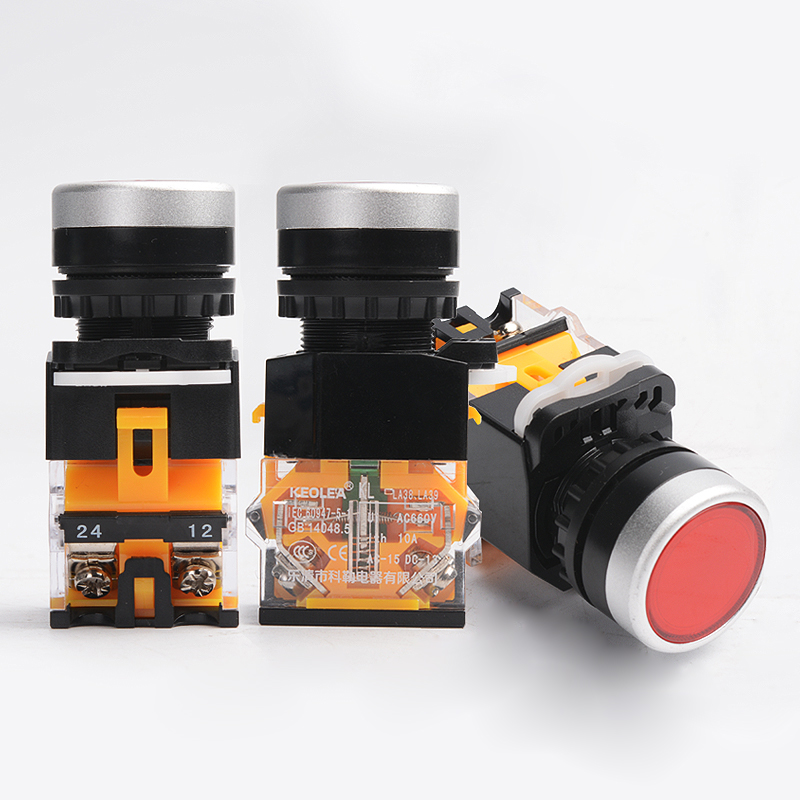 Flat button (red) Flat button (green) Flat button (yellow) Flat button (blue) Flat button (white) Flat button (black) Emergency stop button Two-position knob Three-position knob Mushroom button (red) Mushroom button (