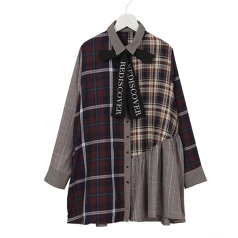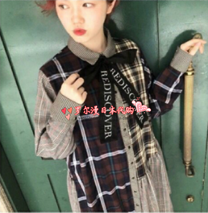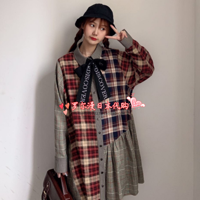 Japan one spo retro plaid college style plaid shirt dress women 2019 new spring and autumn