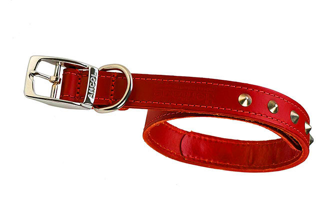 British ancol leather classic series leather stud collar top layer cowhide