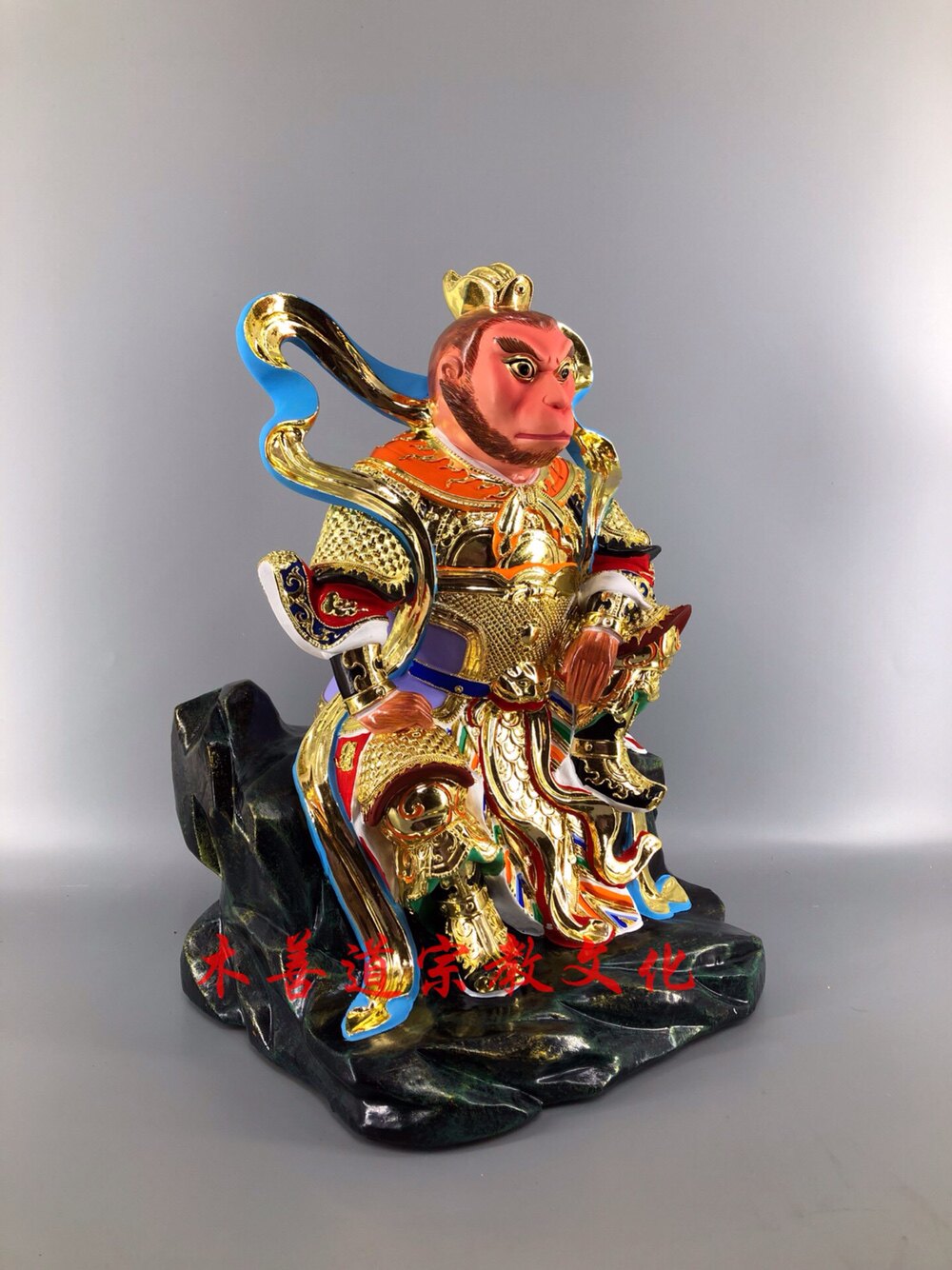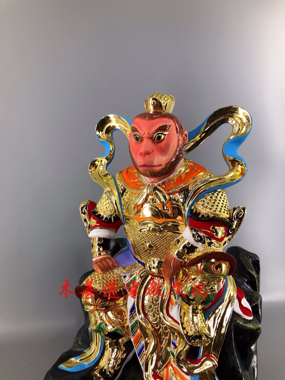 Wood carving Taoist Statue Qi Tiandae Holy Buddha Sun Wuqi Zhangmu Lacquer Line Carving Boutique Handmade 40 cm