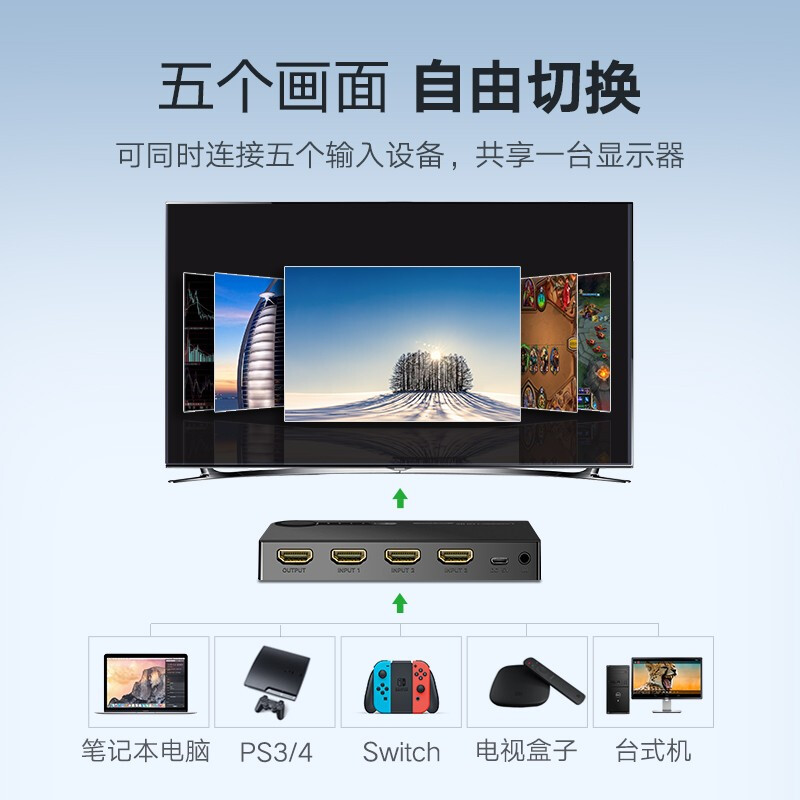 Green Union 40205 hdmi switcher 5 in 1 out of dispenser projector 4k HD film remote control split screen