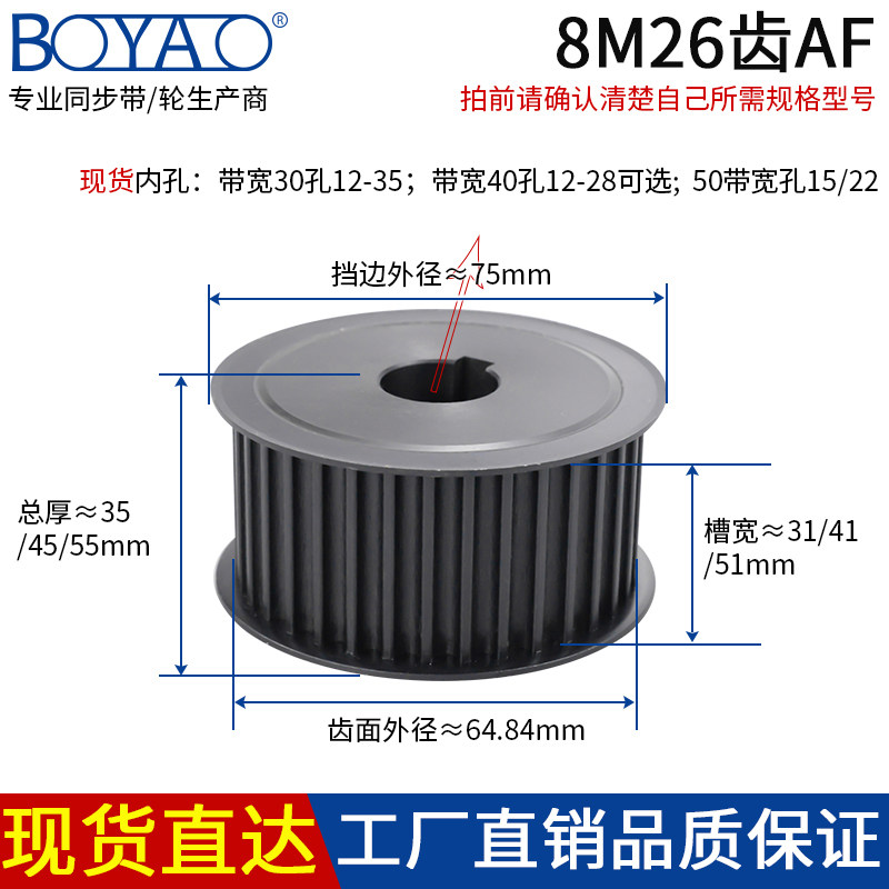 Synchronous pulley 8M-26 tooth T45 steel pulley keyway fixed AF set mechanical transmission spot synchronous wheel