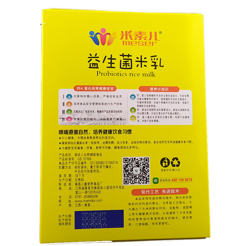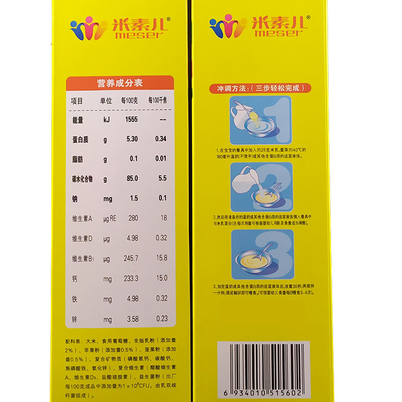 Misoson probiotics rice milk boxed baby nourishing rice flour calcium iron zinc rice burnt children fruit and vegetable multidimensional sub-food