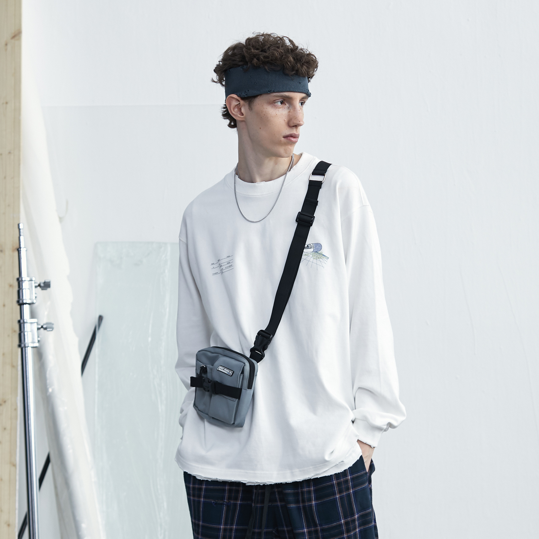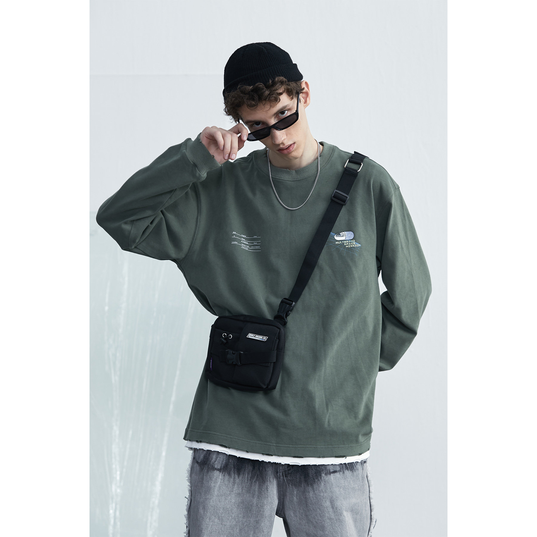 MULT National Tide Pure Color Hip Hop Long Sleeve Capsule Spaceship Round Collar Loose Autumn Winter T-shirt Disrupts The Undershirt Man