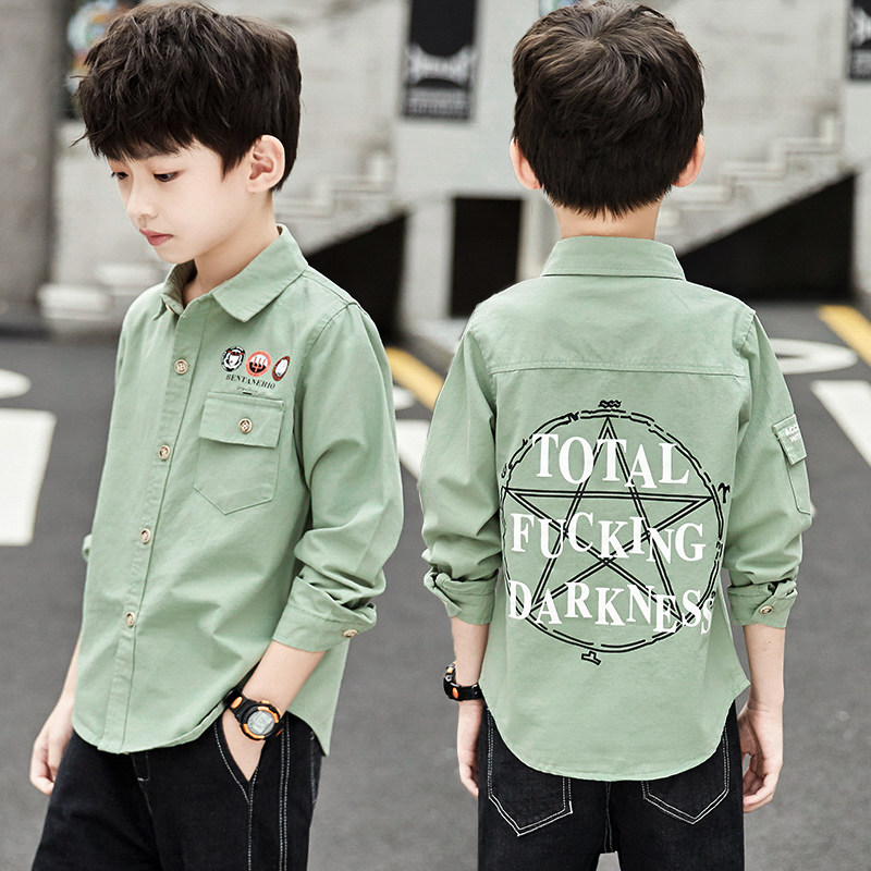 Boy spring autumn pure cotton shirt 2022 new children CUHK children's slim fit blouse boy long sleeve shirt Korean version tide