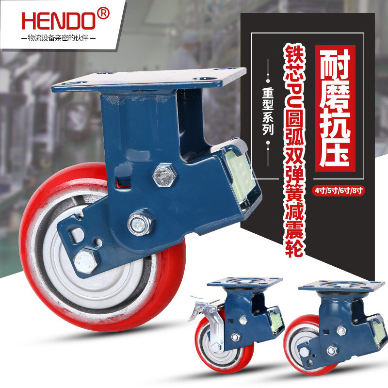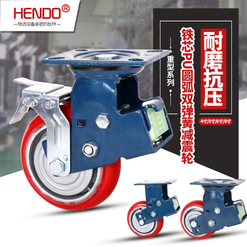 Spring shock-absorbing universal wheel 4 inch 5 inch 6 inch 8 inch iron core PU arc universal caster trolley equipment special wheel